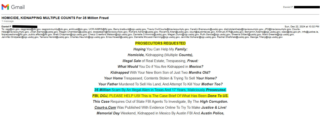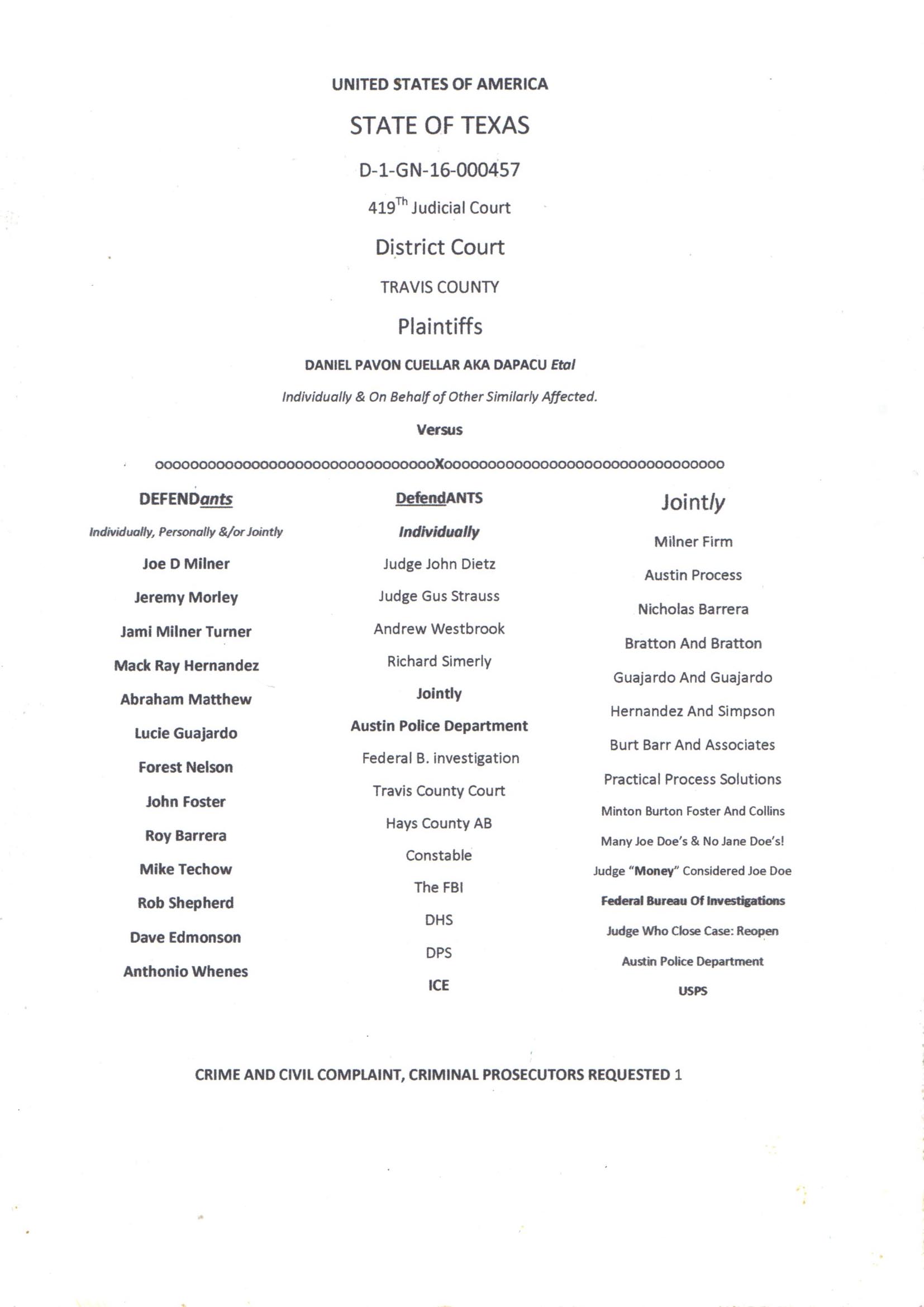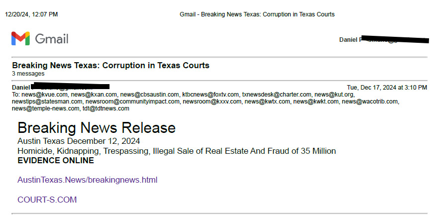 Judges, Austin Police, FBI, Process Servers, Attorneys (Both Sides) Criminal Conspiracy.