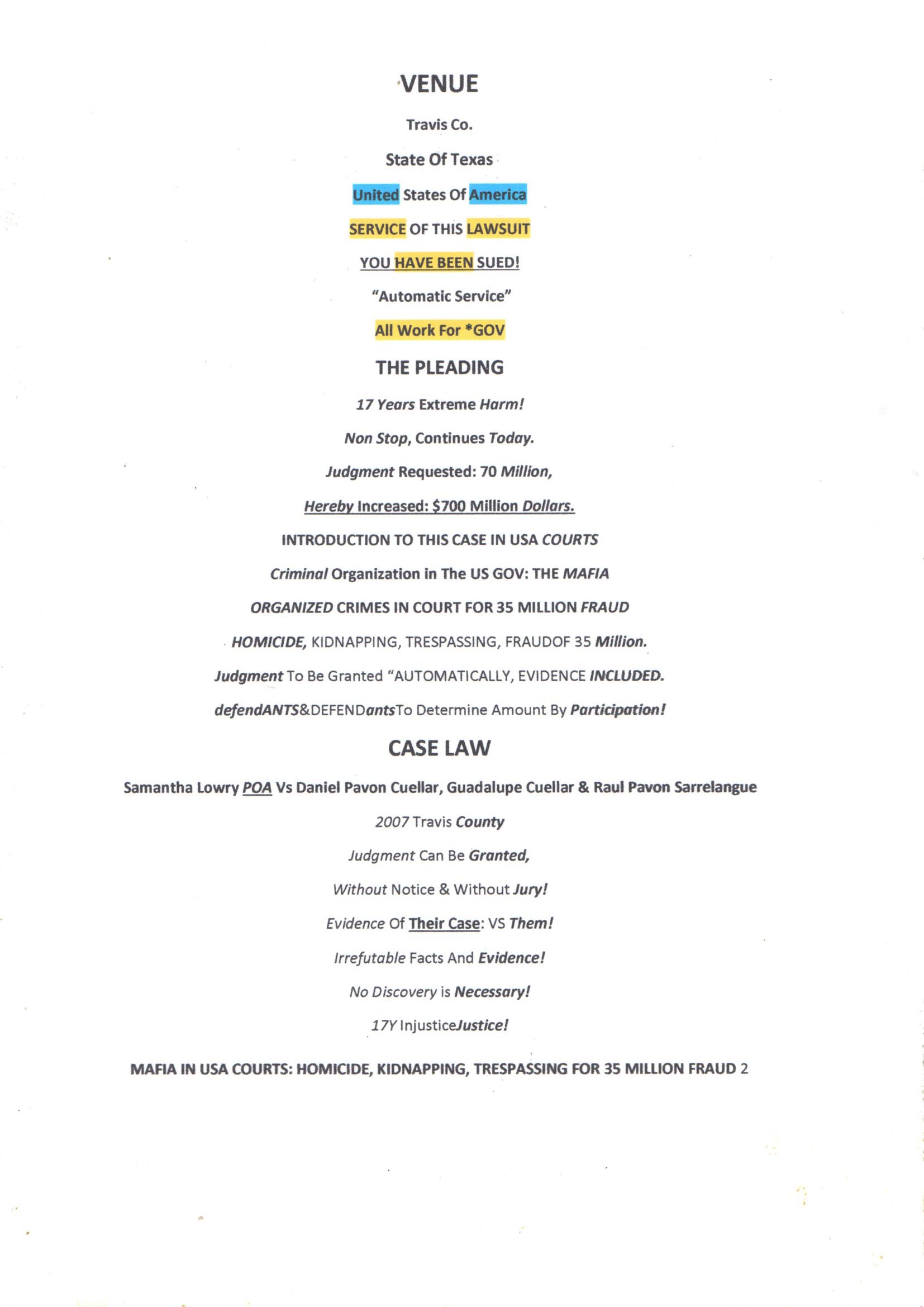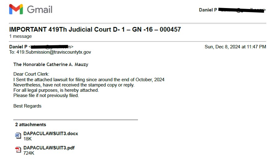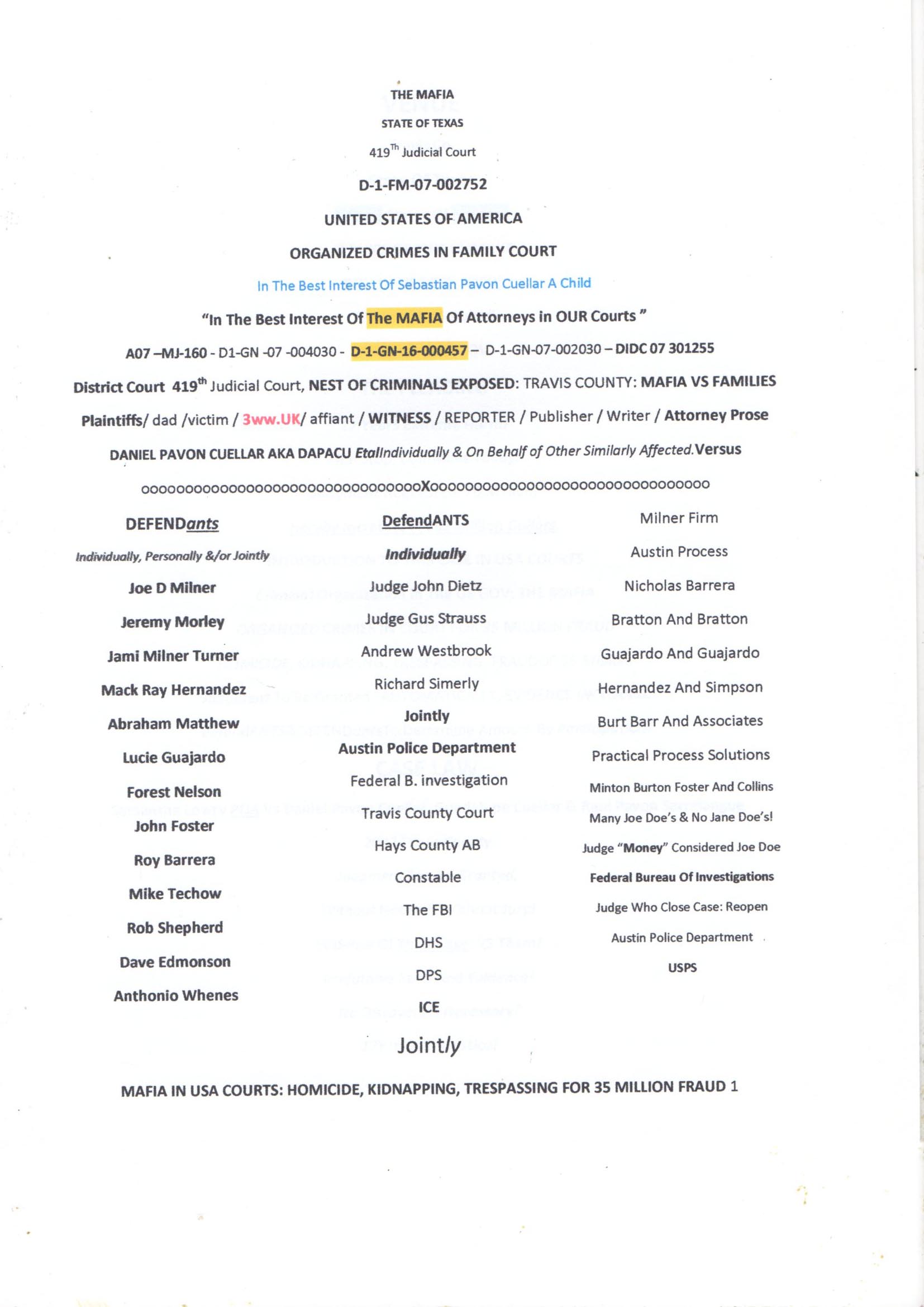 EVIDENCE FILED IN COURTS OF TRAVIS COUNTY AUSTIN TEXAS, Proving Crimes Fully.