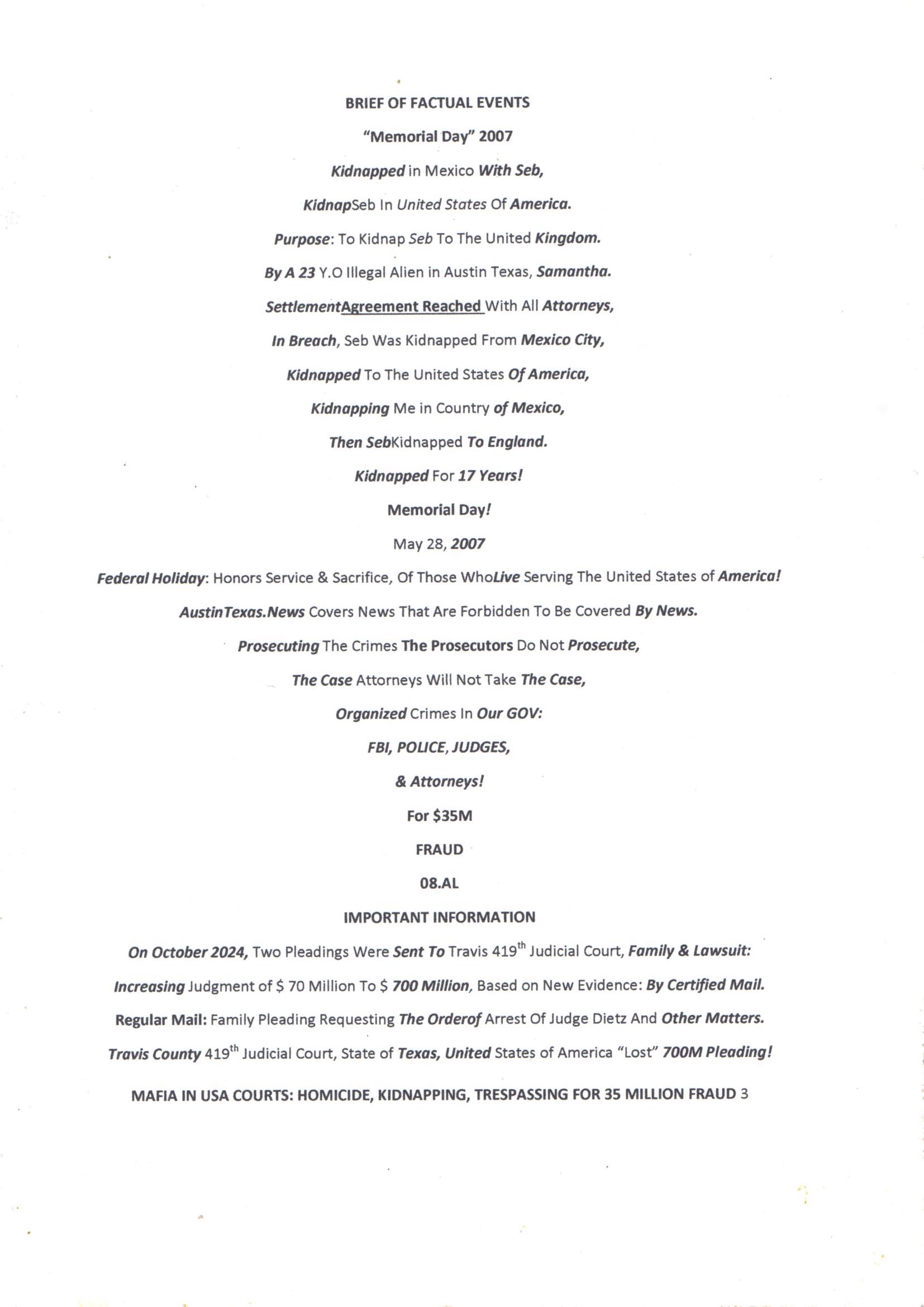 17 Years Of Harm, Homicide, Kidnapping And Total Loss Of All... 3Mo=35M Fraud.