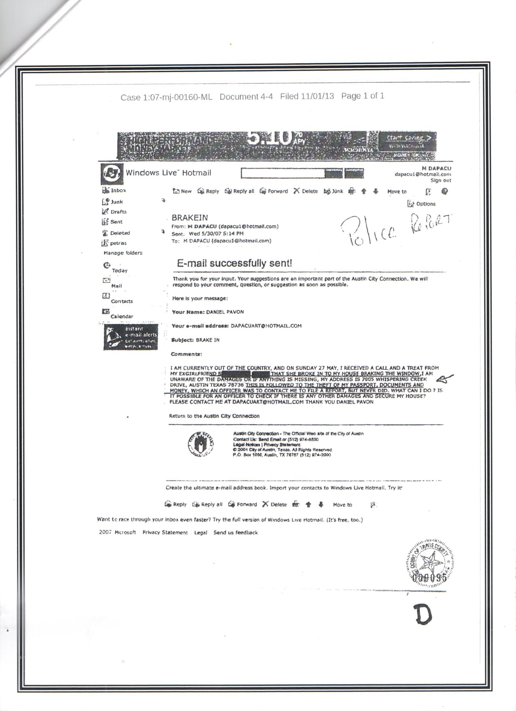 Somehow, This Record Ended on A "Dismissed Case" in Travis County Court!